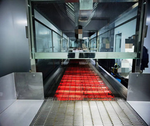 此隧道式烤爐主要用于食品干燥; 內(nèi)膽尺寸 加熱區(qū)長8000×進料口高100×內(nèi)膽有效寬1500mm。 外形尺寸(約) 1.總長8926(分6節(jié)加熱)×寬1900×高1250mm。 2.烘干部分長8000mm,上料區(qū)500mm,下料區(qū)426mm。 3.進料口高度50-120mm可調(diào),輸送帶離地高750-780mm,高度可調(diào)。 溫區(qū) 6個加熱器,分2個溫區(qū)控制,每個溫區(qū)含主控溫和超溫保護并可獨立控制。 溫度范圍 室溫~+95℃,可調(diào),可恒溫 。 溫度均勻度 ±6℃(恒溫狀態(tài)下,空載測試) 儀表溫控精度 ±1℃ 升溫速率 8℃/min 外殼溫度 溫升不超過環(huán)境+15℃,接縫處周邊除外。 電源 三相五線制,380V,50HZ 加熱管 SUS304-U型帶散熱片的翅片不銹鋼發(fā)熱管,共36支每支1.3KW。 功率(約) 加熱約48kW,總功率約55KW。具體隧道式烤爐工藝參數(shù)請來電詳詢:021-67353639